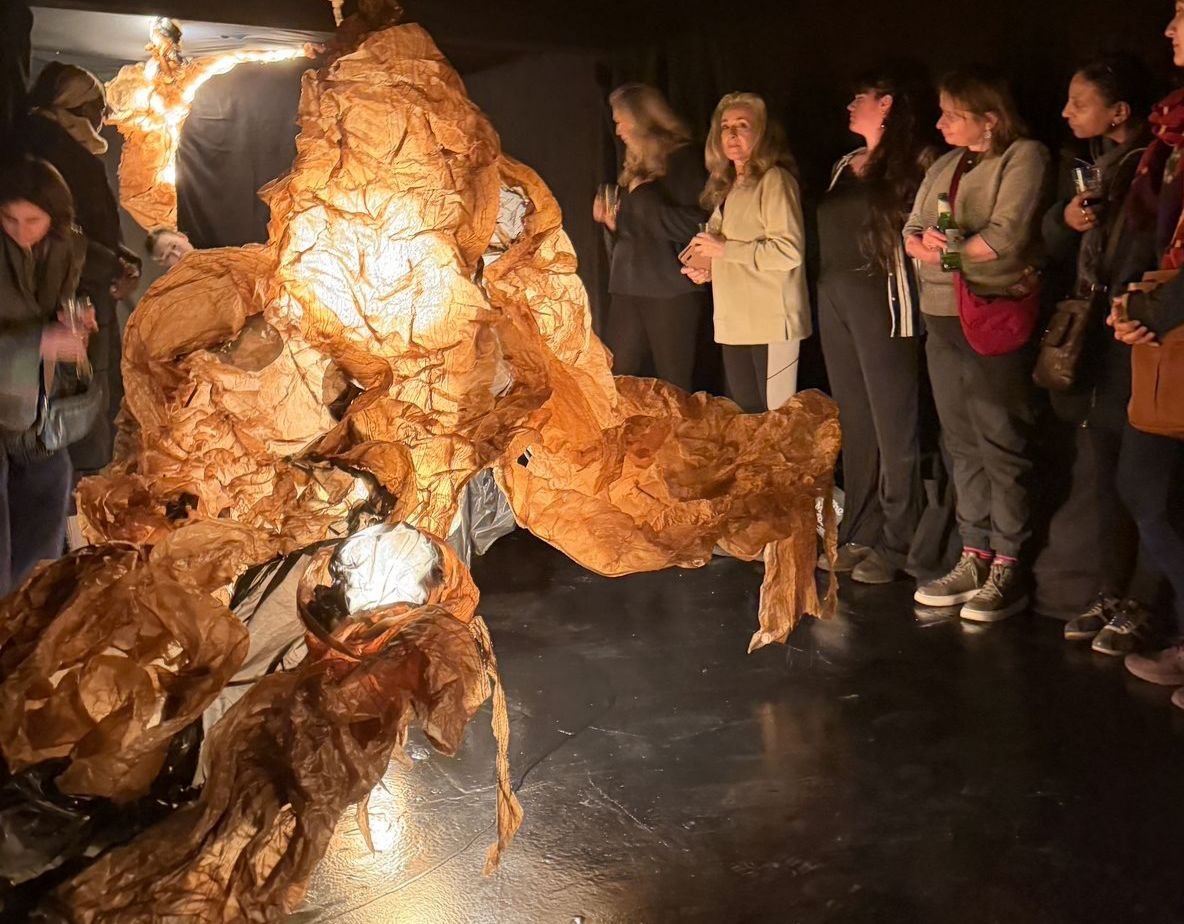 ‘Myth Eaters, The Dark Pasture’, Kate Howe 2026. Aluminium armature wire, industrial waxed kraft paper, lighting. Variable Dimensions. Collection: Installation, Myth Eaters. Installation View.