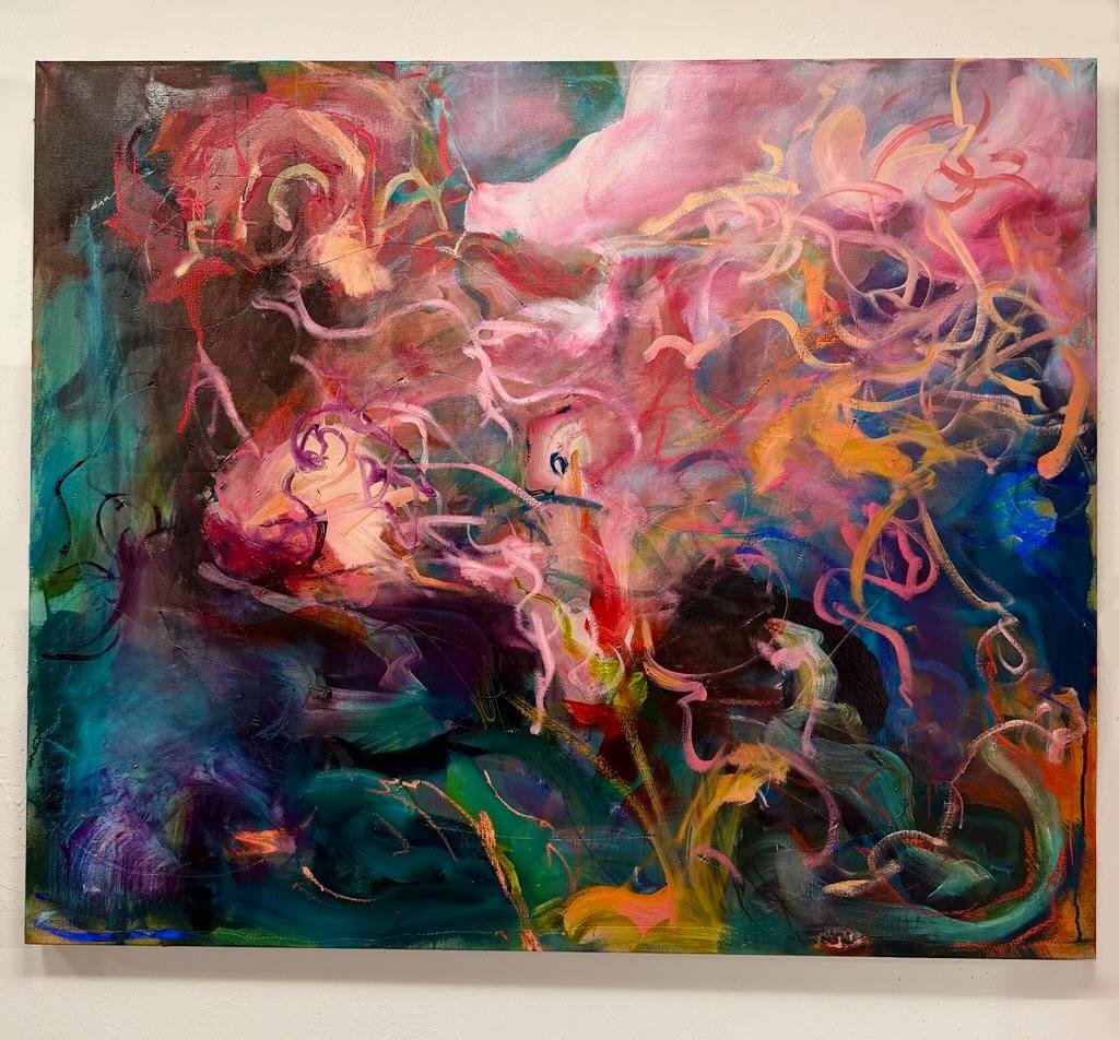 ‘Fallacious Jungle’, Kate Howe 2026. Oil on sutured linen. 120 x 100 cm.